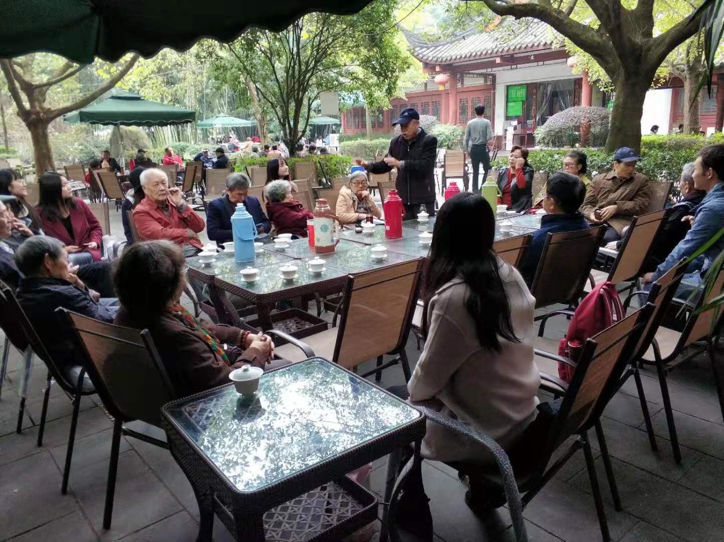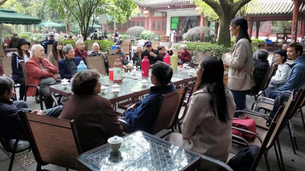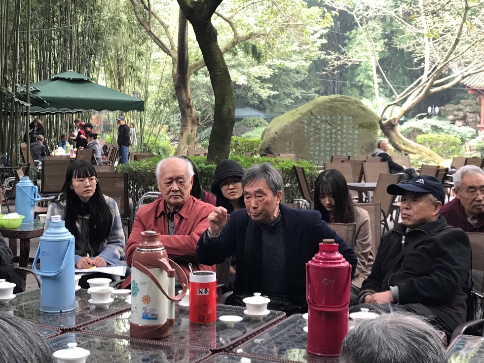 11月11日上午,四川大学文学与新闻学院2019级硕士第二党支部在望江公园碧鸡坊茶坊开展“不忘初心,牢记使命”主题党日活动暨退休教师与学生座谈会。学院党委副书记张莹老师、学院工会主席罗梅老师、数十位学院退休教师以及文学与新闻学院2019级硕士第二党支部的九位同志一起参加了这次组织生活会。