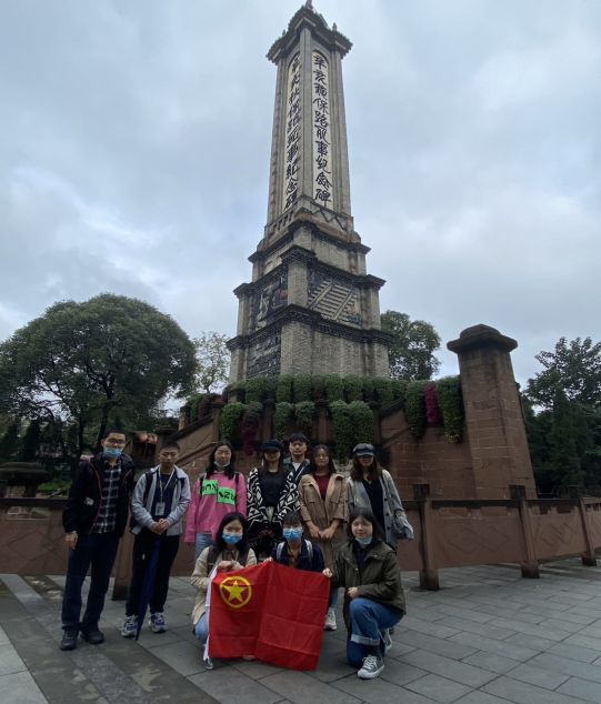 在线下环节,10月18日,团支部组织全体团员集体前往成都市人民公园开展红色主题学习。大家首先参观了辛亥保路死事纪念碑,川军出川抗战纪念碑等历史遗迹。在身临其境的学习中,深刻体会到了革命先烈舍小家、为大家的英雄情怀,感受到了学习“四史”对提高自身思想境界的重要性。