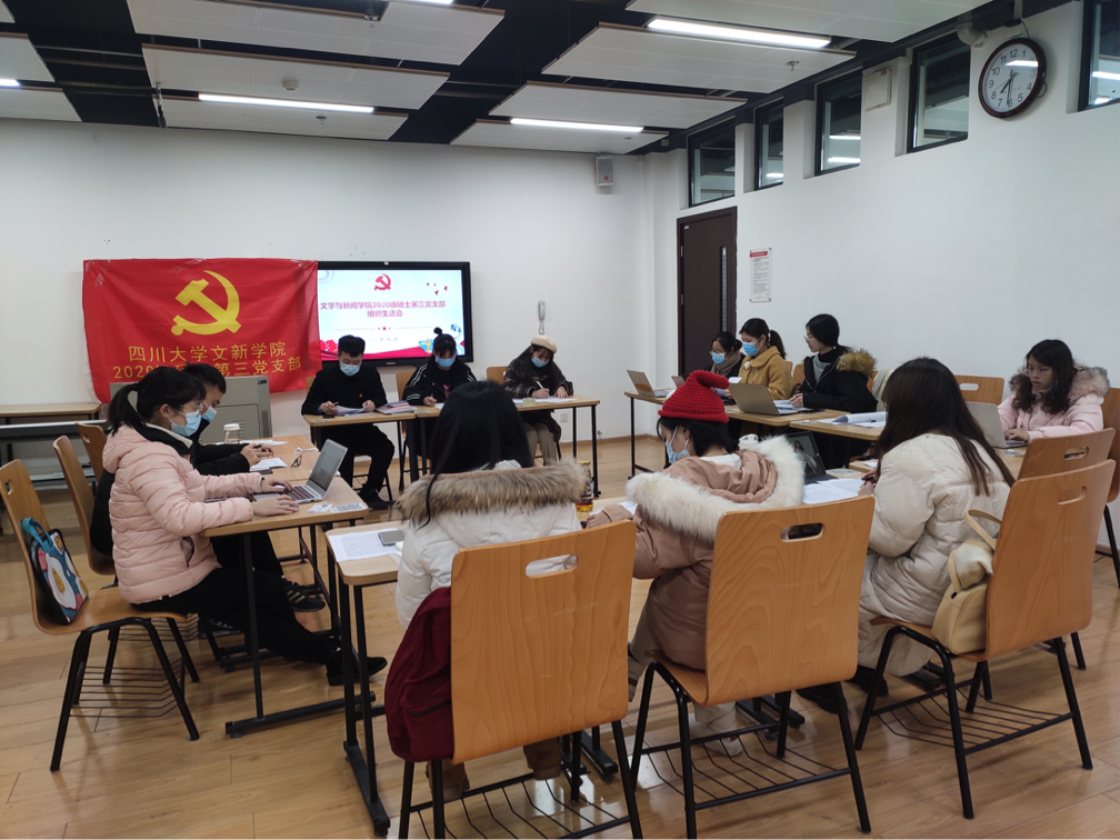 2020年12月22日,我院2020级硕士第三党支部于文科楼一区116教室召开2020年度组织生活会。会前,全体党员集体学习了《关于巩固深化“不忘初心、牢记使命”主题教育成果的意见》和《新形势下党内政治生活的若干准则》(以下简称《意见》和《准则》),党支部书记杨盛果同志作了工作报告。会上,全体党员对2020年度的党支部工作和班子作风进行了评测,并开展了批评和自我批评,进行了民主评议。