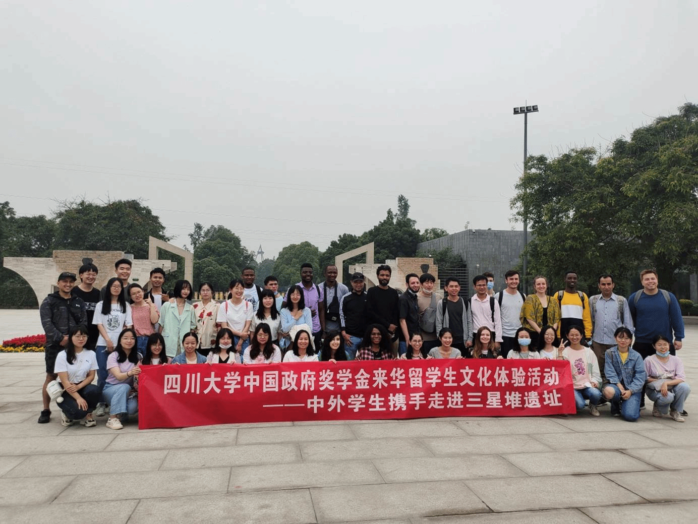 2021年5月21日,我院联合海外教育学院、四川大学国际处留学生管理办公室举行了一场“中外学生携手走进三星堆遗址”的文化体验活动。本次活动旨在促进中外学生的深度融合交流,让中外学生更加了解古老而神秘的中华文化。我院“江姐班”学生和四川大学中国政府奖学金来华留学生也参加了本次活动。