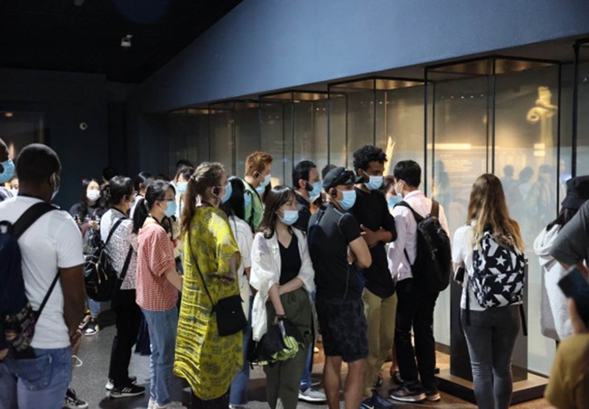 下午两点,参观队伍抵达三星堆博物馆,跟随博物馆讲解员的步伐,中外学生开启了本次三星堆神秘文化的探索之旅。