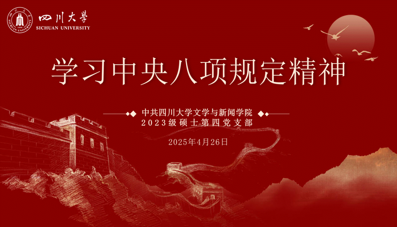2025年4月26日,四川大学文学与新闻学院2023级硕士第四党支部围绕中央八项规定精神展开深入学习与交流。此次活动旨在强化党员的纪律意识,提升党性修养,以优良作风更好地服务群众、践行使命,为推进全面从严治党贡献力量。