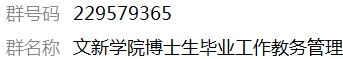 博士生毕业工作教务管理群(群号229579365),各位拟毕业博士生请以“学号+姓名”实名方式申请加入后详细查看有关毕业答辩授位相关事项。