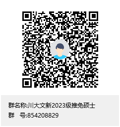 申请人请加入“川大文新2023级推免硕士”QQ群(群号:854208829, 也可扫描以下二维码进入),该群需实名认证,认证方式是“姓名+所在学校”。