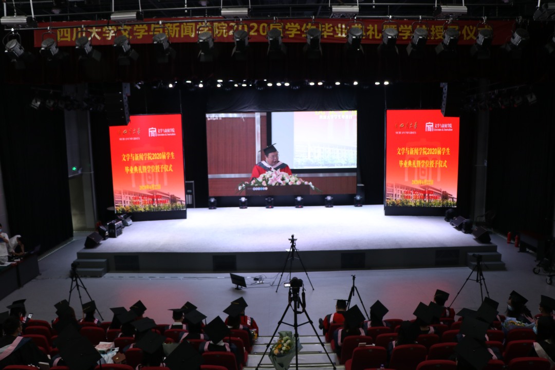 6月22日上午,四川大学文新学院2020届学生毕业典礼暨学位授予仪式在望江校区举行。江安校区分会场的学院师生通过线上同步直播的形式参加了这场特别的毕业典礼。