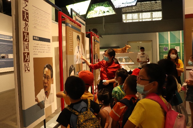 志愿者在浙江自然博物馆里为“小候鸟”们做现场讲解