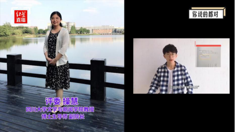 8月3日,第二季“红星新闻高校评论新秀挑战赛”(视频评论专场)在线上启幕,来自全国各地高校的150余名学子参加了本次比赛。我院学子积极参与,在比赛中获佳绩。我院副院长操慧教授任评委,并受邀与参赛学子进行线上分享交流,探讨网络时代的观点表达。共同担任评委的还有中国青年报编委、高级编辑曹林,四川省电视艺术家协会新媒体专委会主任王彬荣。