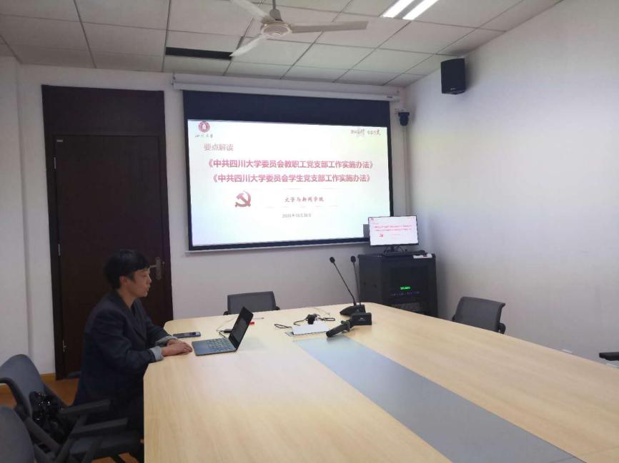2020年10月30日下午,我院专职组织员成春教授为教职工党务工作者开展了线上培训暨“十九届五中全会”精神专题党课学习。专题党课学习了《中共四川大学委员会教职工党支部工作实施办法》及《十九届五中全会公报》,学院各教职工支部书记及部分教师代表参加了培训学习。