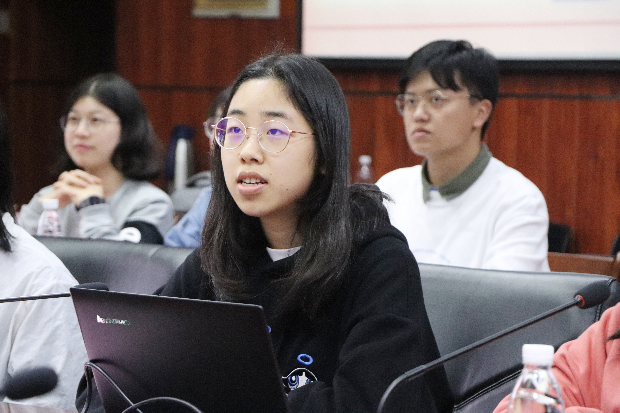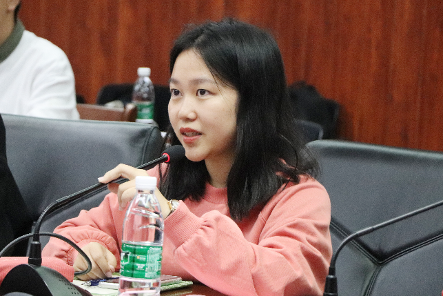 担任文体生活委员的郭静楠同学主要围绕自己在四川大学学生电视台和院学生会秘书处的工作经历进行分享,她表示这些经历不仅让她收获了专业技能和友谊,也让她得以带着更高的集体责任感面对如今的班委工作。王曼卿同学则分享了自己的职业生涯规划及对未来发展的思考,她希望自己日后能够继续留在高校进行深入研究,努力实现产学研的结合。