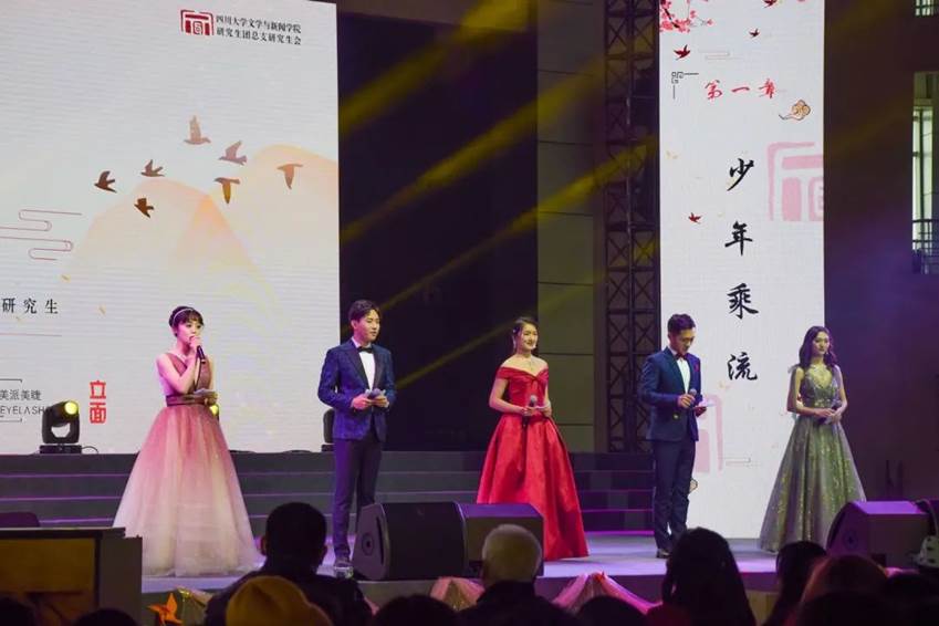 11月28日下午14时,四川大学文学与新闻学院2020级研究生迎新演出正式开始。文学与新闻学院院长李怡教授、副院长胡易容教授、副院长周维东教授、副院长操慧教授、俗文化研究所所长张弘教授、学院党委副书记兼纪委书记张莹老师、团委书记王志华老师、姜英副教授、梁小梅老师、何燕李老师、王涛老师、孙利老师、2020级博士生辅导员吴光芬老师,2020级研究生辅导员雷子慧老师、兼职辅导员原豆豆和纪名璐以及各兄弟学院研会主席团到场,同2020级研究生共赏演出。