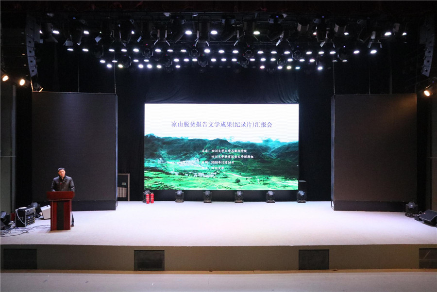 2020年12月24日,四川大学“纪录片与大文学”专题研讨会于我校江安校区文科楼举行。会议由我院以及我校凉山扶贫报告文学课题组主办。我院党委书记古立峰教授、院长李怡教授、我校社科处处长傅其林教授、我校宣传部教育电视台台长蔚钰、我校扶贫办副主任魏忠、学院副院长操慧教授、侯洪教授,西南民族大学民族语言文学研究院院长阿库乌雾教授,著名作家蒋蓝、马平,以及凉山扶贫报告文学课题组的徐新建教授、梁昭副教授、邱硕副教授与余孟庭导演等参加了会议。