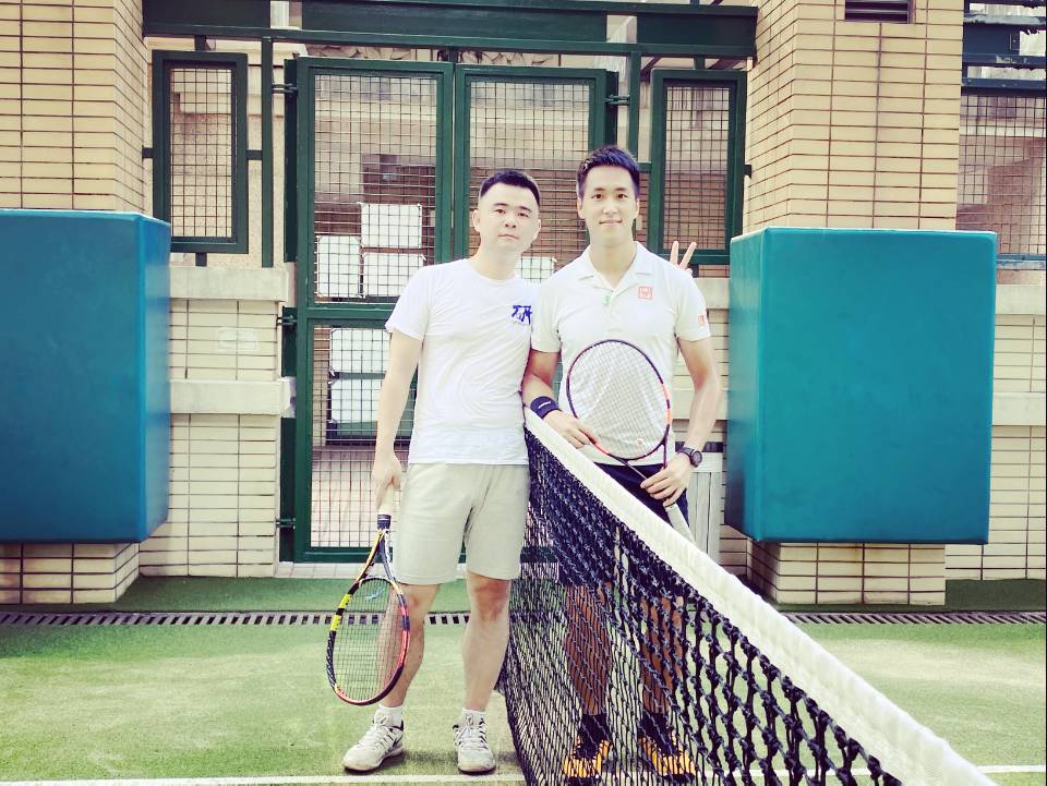 网球是赵阳(左一)最喜欢的体育项目,他与搭档一起,经常活跃在香港业余网球比赛的双打赛场上