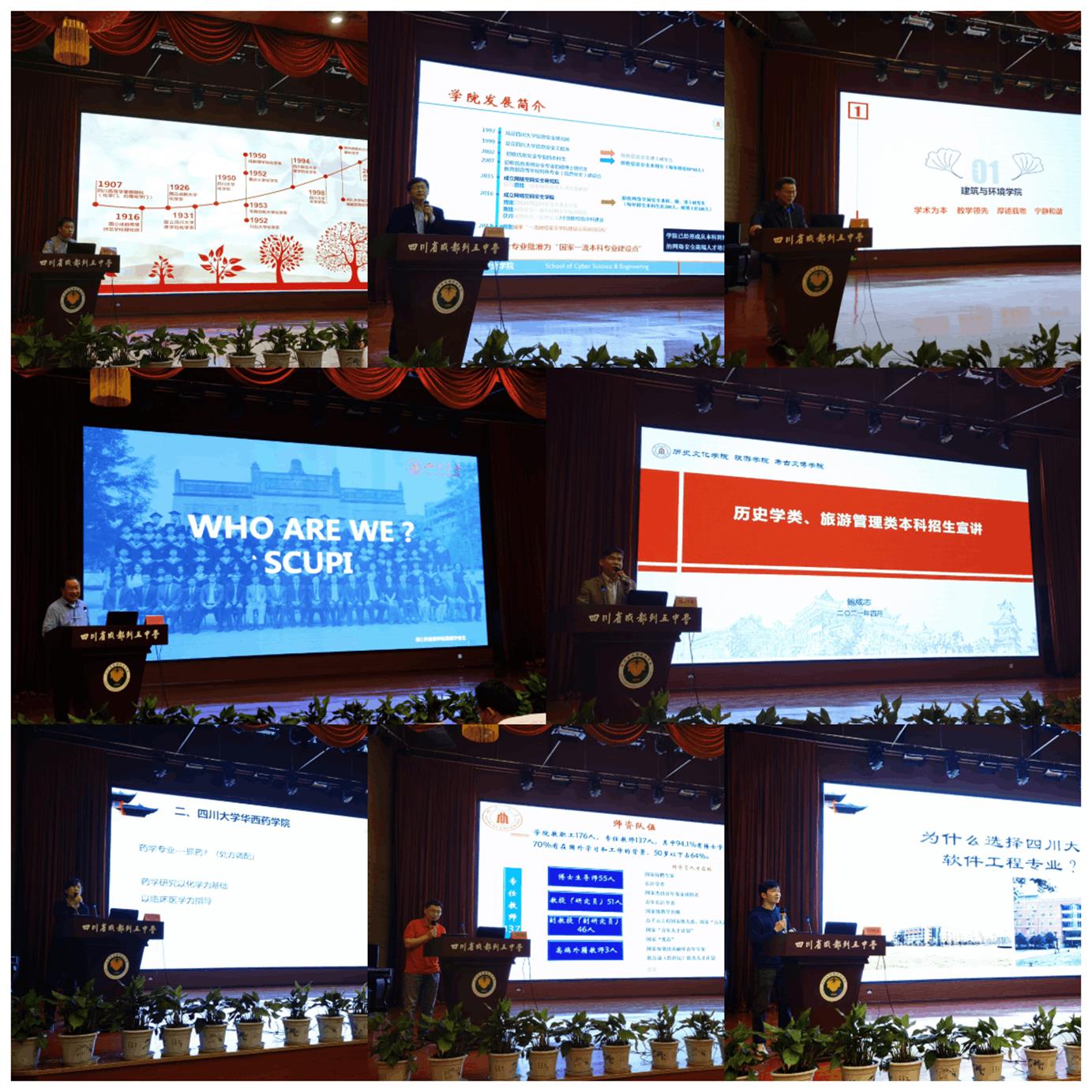 宣讲会上,四川大学招生办公室副主任廖爱民向学生家长详细介绍了四川大学的整体情况、招生政策以及拔尖计划、强基计划等特色项目的开展情况。参加宣讲团的各个学院的副院长或宣传专员就本学院情况及特色进行了招生宣传。
