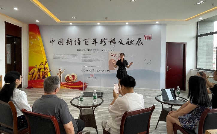 在采访中,志愿讲解队成员、汉语言文学专业2020级本科生甘露表示:“学院的新诗文献展给了我们一个更直接的接触中国现代诗歌的途径,也让我们更深刻地感受到了百年建党的热烈氛围。而讲解这个过程,既能加深我自己对新诗的了解,也可以向更多人传播新诗以及新诗背后的时代精神,我身在其中倍感光荣。”