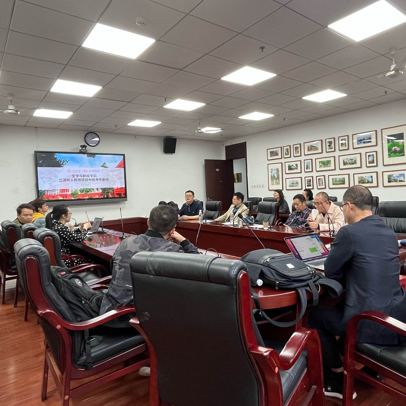 2021年10月12日,我院在文科楼一区418会议室举行了“立德树人”教改项目中期考核会。学院党委书记古立峰教授、副院长周维东教授以及学院王晓路教授、阎嘉教授作为考核专家出席会议。本次考核会由周维东教授主持。