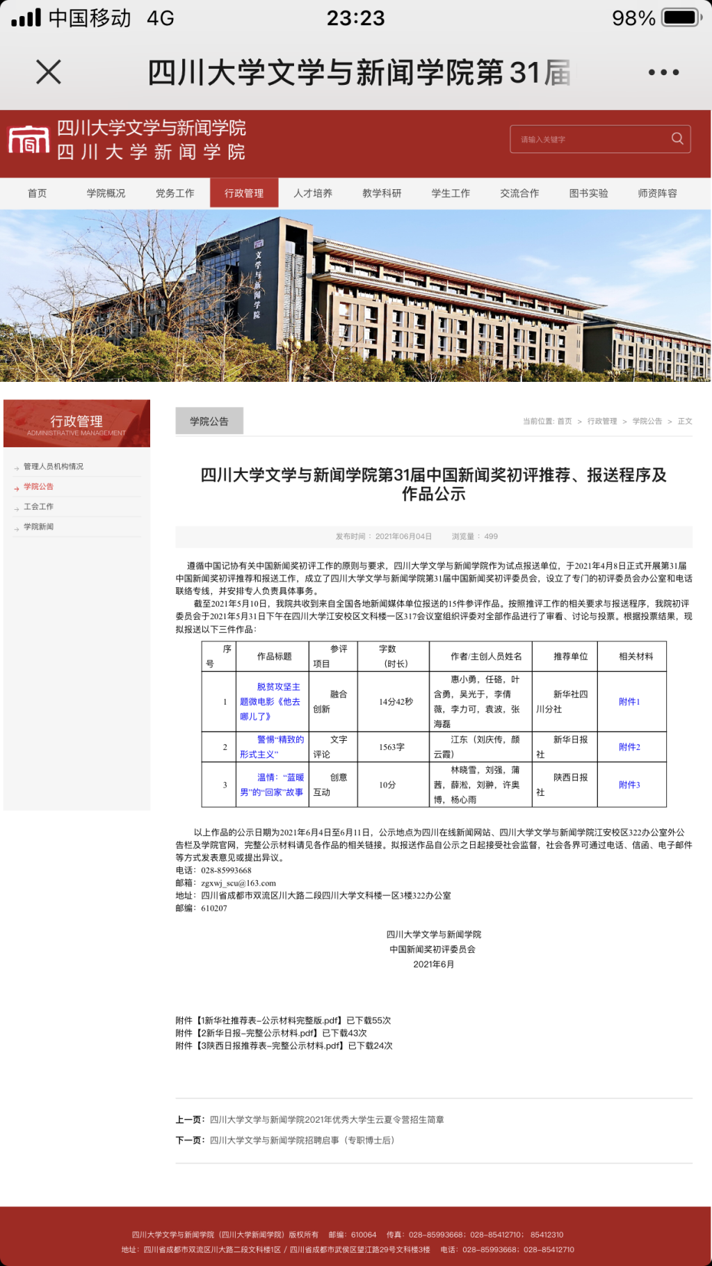 我院“第31届中国新闻奖初评推荐、报送程序及作品公示”截图