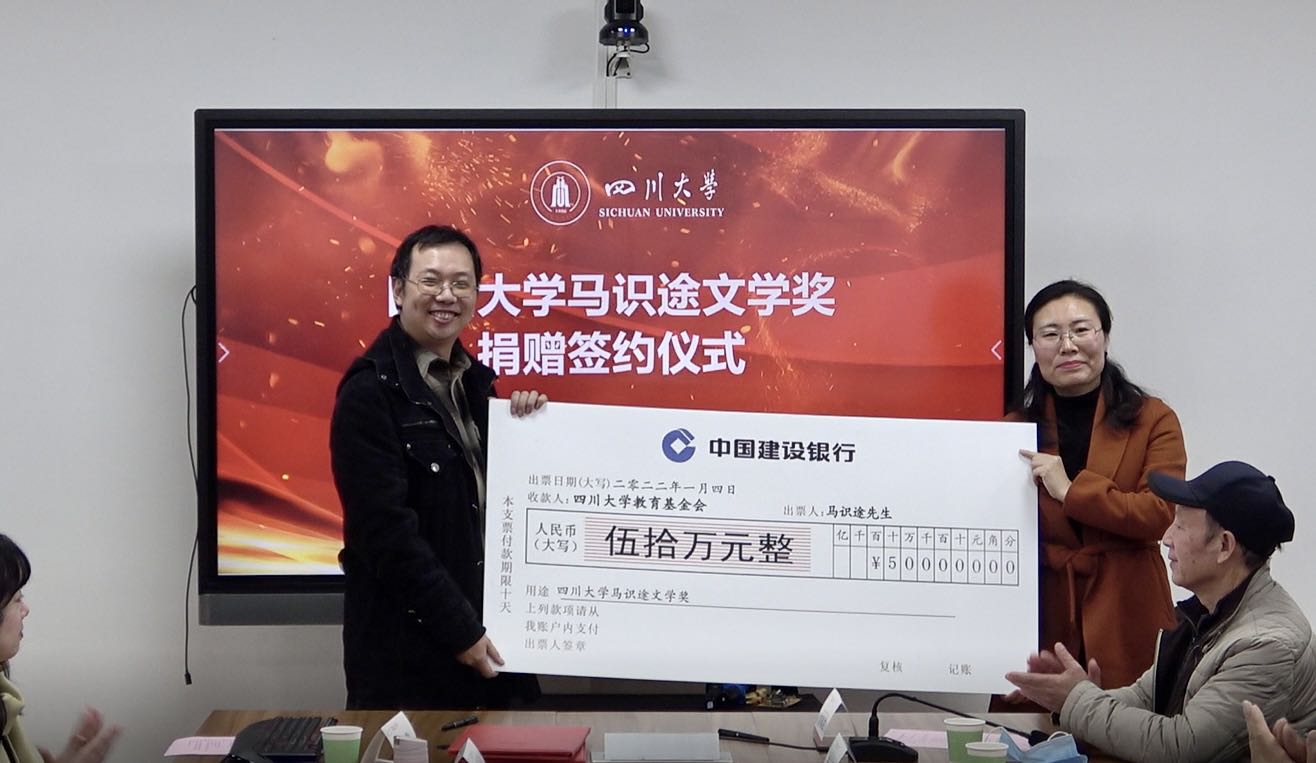 1月4日下午,新年伊始,第八届四川大学“马识途文学奖”捐赠签约仪式在我校江安校区文科楼举行。我国著名作家、诗人、书法家,我校杰出校友、特聘教授马识途先生再向四川大学教育基金会捐赠50万元,以资助热爱文学、积极向上的川大学子。