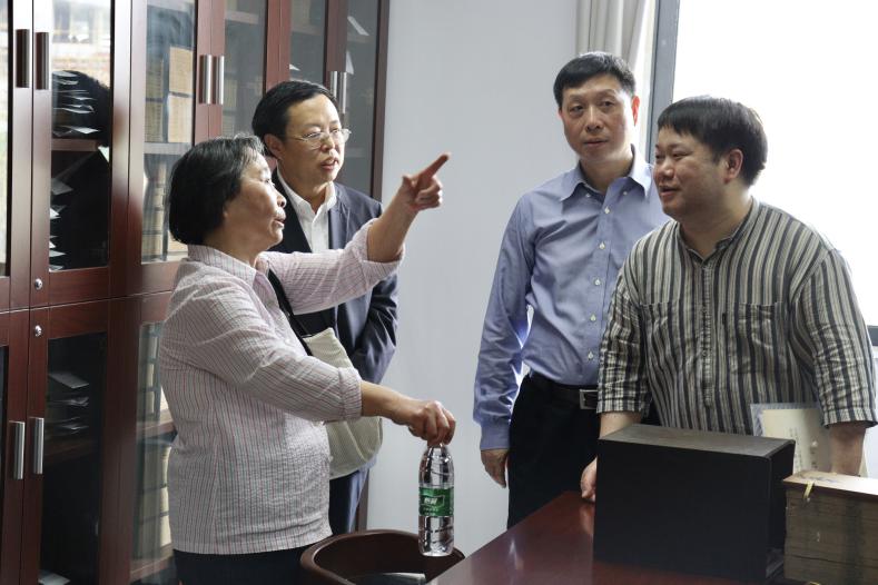 捐赠及揭牌仪式结束后,我院副院长罗鹭教授带领诸位嘉宾前往“杨明照古籍特藏室”参观,向大家详细介绍了我院的古籍收藏情况。对于杨先生长女杨珣女士的慷慨捐书之举,四川大学党委常委、副校长姚乐野教授在表示感谢之余,也强调了古籍保护工作与学术精神传承的重要性。