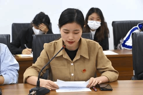 四川大学“五四红旗团支部”团支书代表伍诗涵是文学与新闻学院2020级汉语言文学基地班的同学,她从工作实践的三个方面分享了自己如何带领同学们讲好党史故事的体会:一是以“文学知识”作为媒介,联系起党史和日常学习;二是利用好四川大学这一红色基因宝库;三是鼓励团员青年同团支书进行双向交流,发挥青年主动性。