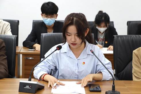 四川大学“十佳团支部书记”、文学与新闻学院2020级汉语国际教育专业硕士生贾银菊在座谈会上谈起一次外国友人当面肯定中国智慧和中国方案的对话,她一方面感到十分自豪,另一方面也认识到此项工作需要继续深入推进,作为青年一代任重道远,使命光荣。