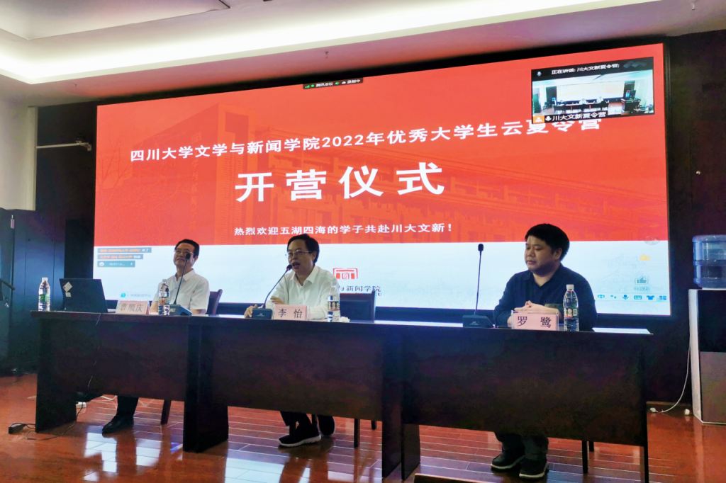 四川大学文科杰出教授、欧洲科学与艺术院院士曹顺庆教授,我院院长李怡教授出席开营仪式,开营仪式由我院副院长罗鹭教授主持。
