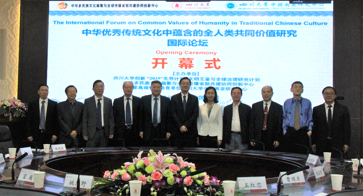 2022年9月24日-25日,由四川大学“创新2035”先导计划文明互鉴与全球治理研究计划、中华多民族文化凝聚与全球传播省部共建协同创新中心、国家高端智库培育单位四川大学中国南亚研究中心共同举办的“中华优秀传统文化中蕴含的全人类共同价值研究”国际论坛在我校顺利召开。尼泊尔前驻华大使利拉·马尼·鲍德尔受邀参加了本次论坛。来自英国剑桥大学、美国宾夕法尼亚州立大学、达拉斯德州大学、亚利桑那大学、印度国际大学、法国巴黎索邦大学、日本立教大学以及香港中文大学、中国社会科学院、北京大学、上海交通大学、西南民族大学、成都大学等单位100余国内外学者,通过以线上与线下方式参加本次国际论坛。四川省委宣传部副部长王红芯、四川大学副校长姚乐野,杰出教授曹顺庆、詹石窗、霍巍,文学与新闻学院院长李怡教授,校宣传部、国际合作处等部门领导参加了本次论坛。开幕式由四川大学社会科学研究处处长傅其林教授主持。