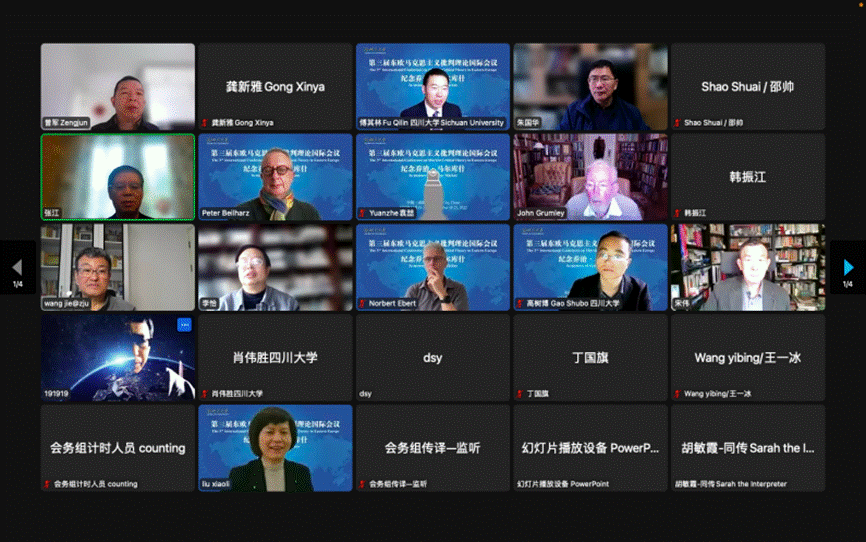 2022年11月18日-21日,由四川大学文学与新闻学院、国家社科基金重大招标项目“东欧马克思主义美学文献整理与研究”课题组主办,澳大利亚《论题十一》(Thesis Eleven)杂志社、马克思主义文艺理论研究中心、中华美学学会马克思主义美学专业委员会协办的“第三届东欧马克思主义批判理论国际会议”在四川大学召开。来自澳大利亚拉筹伯大学、悉尼大学、蒙纳士大学、麦考瑞大学、英国伦敦大学、斯洛文尼亚卢布尔雅那大学以及中国社会科学院、中国人民大学、复旦大学、浙江大学、上海交通大学、黑龙江大学等机构的100余位专家学者参加了本次会议。中国文学批评学会会长、原中国社会科学院副院长、《中国社会科学》杂志总编张江、四川大学常务副书记曹萍、全国马列文艺论著研究会会长党圣元,澳大利亚《论题十一》杂志社主编彼特·贝尔哈兹,我院院长李怡到会致辞。开幕式由社科处处长傅其林主持。
