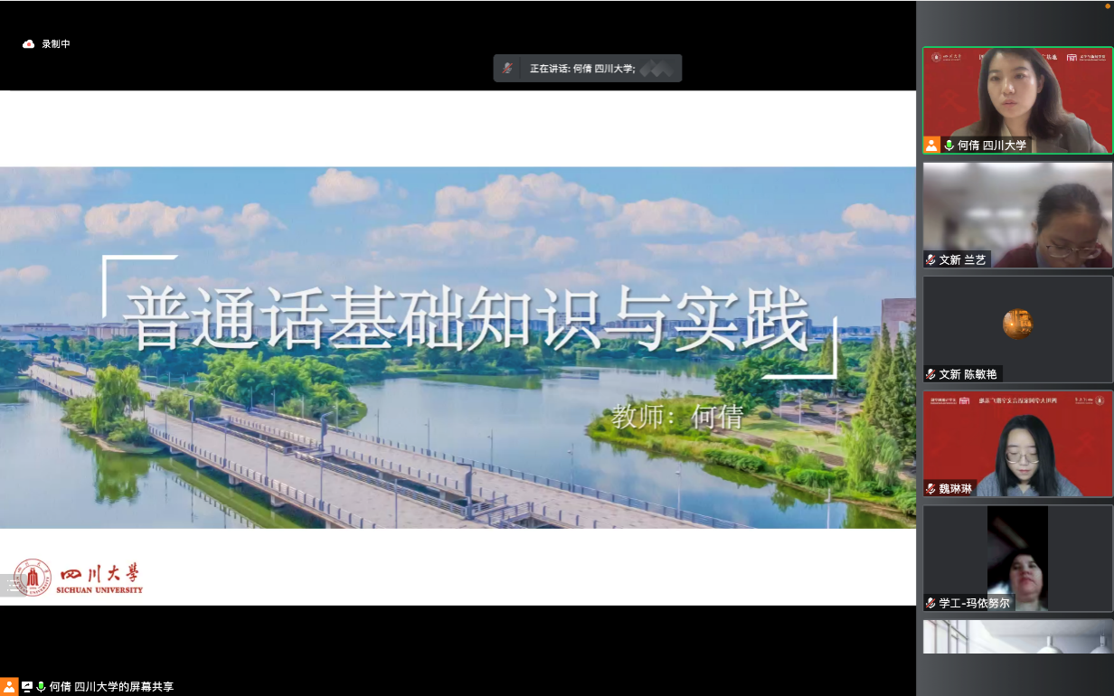 为贯彻落实教育部、中央宣传部、中央统战部、国家民委四部门关于《深化新时代学校民族团结进步教育指导纲要》要求,加强四川大学师生语言文字规范化建设,四川大学国家语言文字推广基地联合校人事处(学校语言文字工作委员会办公室)、学工部、党委宣传部、教务处,于11月26至27日面向全校师生在线开展了2022年四川大学校内师生国家通用语言文字培训活动。