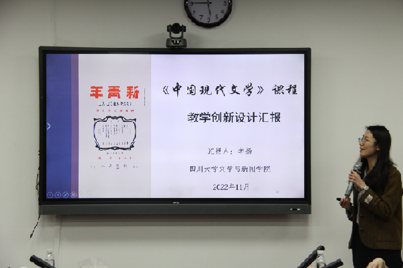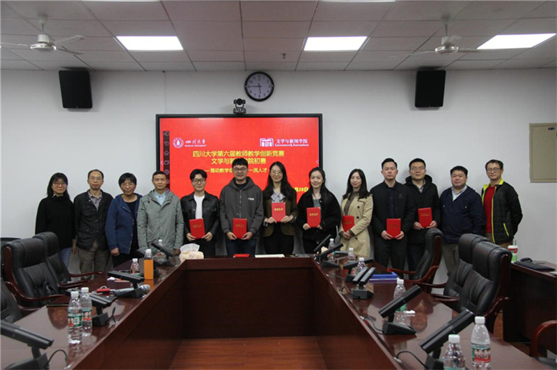2022年11月28日下午,我院在江安校区文科楼一区418会议室举行四川大学第六届教师教学创新竞赛文学与新闻学院初赛。我院刘亚丁教授、王红教授、蒋忠波教授、李果副教授、段弘副教授担任初赛评委。谢君兰副教授、吕东副教授、宋耀研究员、戴路副研究员、骆世查老师、李扬老师、赵心竹老师、袁喆老师等8名教师参加初赛。初赛由学院教学副院长罗鹭教授主持。