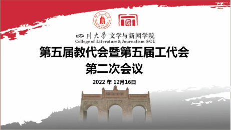 2022年12月16日上午,四川大学文学与新闻学院第五届教职工代表大会暨第五届工会代表大会第二次会议以线上线下相结合的方式顺利召开。