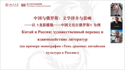 2023年5月9日,由四川大学文学与新闻学院主办,四川大学中华文化研究院、四川大学中国俗文化研究所、四川大学当代俄罗斯研究中心协办的“中国与俄罗斯:文学译介与影响——以《龙影朦胧——中国文化在俄罗斯》为例”交流活动在四川大学举行。我院刘亚丁教授的学术著作《龙影朦胧——中国文化在俄罗斯》获国内外专家一致好评。