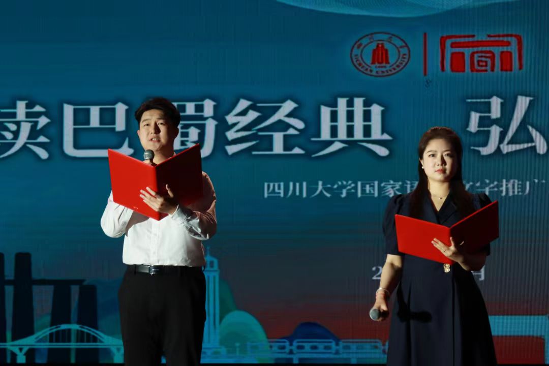 在“诵读巴蜀”展演活动中,由四川大学文学与与新闻学院朱姝副教授指导,我院研究生辅导员郑格老师与硕士研究生董源同学合作诵读的《谁是最可爱的人》获现场一致好评。