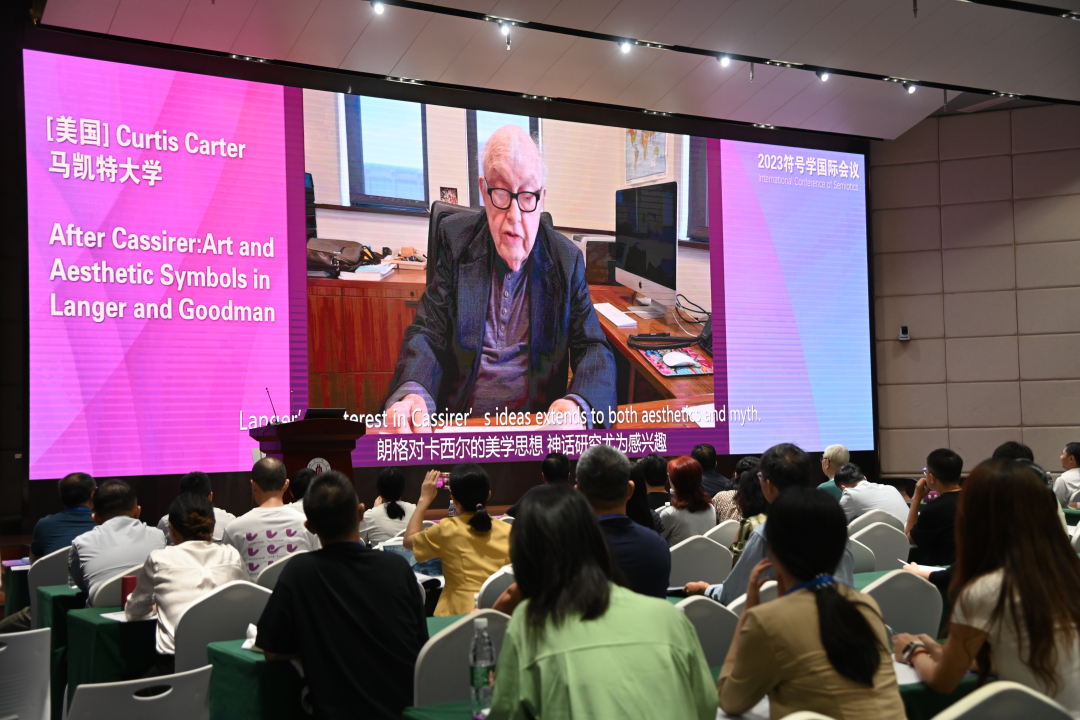 20日上午举办了大会学术报告的下半场,由苏州大学王军教授主持,南京师范大学余红兵教授评议。来自美国马凯特大学的Curtis Carter、南京大学艺术学院的赵奎英、浙江大学传媒与国际文化学院的李杰、瑞典林奈大学的Michael Ranta、意大利都灵大学的Massimo Leone和加拿大康考迪亚大学的Duan Lian采用“线上+线下”的方式分享了他们的学术报告。
