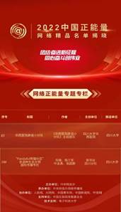 中国正能量“五个一百”网络精品征集评选展播活动是由中央网信办主办的网络内容建设领域重要评选活动,每年评选一次,至今已举办七届,产生了广泛的社会影响。今年的活动以“团结奋进新征程 同心奋斗创伟业”为主题,坚持以习近平新时代中国特色社会主义思想为指导,深入贯彻落实党的二十大精神,立足新时代新征程新伟业。活动突出主题引领、全媒体系、全民参与,围绕迎接宣传贯彻党的二十大、北京冬奥会、北京冬残奥会、疫情防控等重大主题,广泛征集2021年8月1日至2022年12月31日期间涌现的网络正能量文字、图片、音视频、专题专栏和主题活动。经过初选、专家审核评议、网络展播投票、终选以及结果公示,最终评出五大类共计550件网络精品。