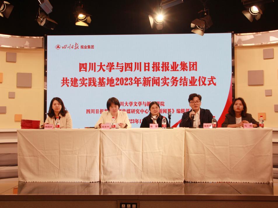 最后,我院副院长操慧教授代表学院在总结发言中对川报集团为此次实习所做的精心安排与全面准备表示由衷感谢。她说通过同学们的实习收获分享,欣喜地感受到了同学们在实习中所增长的胆识、才智以及对未来发展无限可能性的信心。她从亲历体验出发,勉励大家每天以学习者的姿态出发,“精益求精,勤于思考和练笔,相信大家的专业成长会更快。”