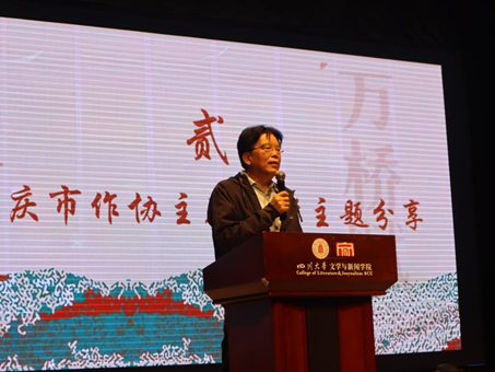 2024年10月16日晚,四川大学作家校园行:“从虚构抵达真实,从自我走向家园”——《万桥赋》文学创作谈活动在文学与新闻学院演播厅顺利举行。