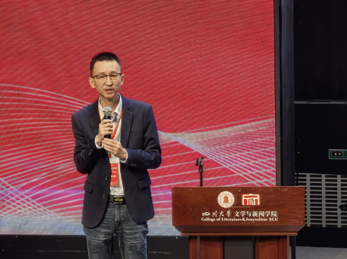 四川大学副校长刘超教授作线上致辞。他代表四川大学向各位远道而来的参会嘉宾表示诚挚欢迎,并期待各位专家通过对数智时代认知传播前沿问题的探讨,为数字时代的认知传播研究贡献中国视角、中国思考和中国智慧。