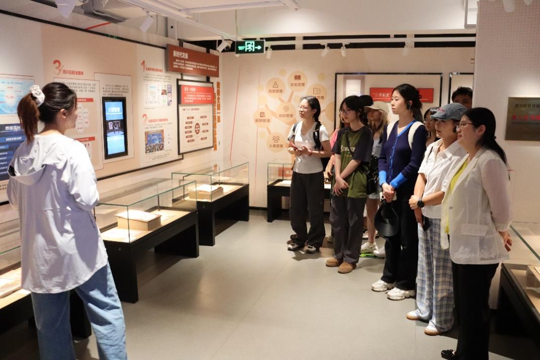 本次研学实践活动在四川报业博物馆拉开帷幕。四川报业博物馆现设有《初心使命》四川报业发展主题展、《奋进四川》四川日报报业集团主题展和《烟火巴蜀》主题影像展区,馆内展示了四川报业发展的相关文献资料、影像资料、采编用具、印刷设备等珍贵藏品360余件。在讲解员的带领下,我院师生依次走进三大展厅,沉浸感受四川传媒产业沿革与巴蜀地区发展历程。