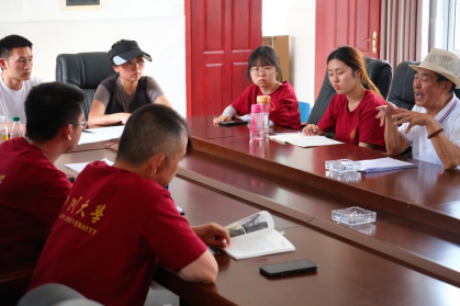 实践队与甘洛县原文联主席李靖忠、甘洛县原文化局工作人员赵建敏一起开展座谈。李靖忠说:“海棠镇是茶马古道和灵关古道的必经之路,希望同学们写出海棠古镇的历史风貌和经济文化繁荣发展。”赵建敏向实践队讲述了甘洛彝绣和尔苏藏族还山鸡节等当地著名非遗文化。实践队员们表示将广泛收集素材,认真梳理和提炼,创作出有感染力的“海棠故事”,助力当地文旅宣传。