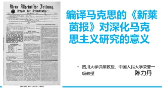 他强调,新闻语言似乎比哲学语言简单。“简单到必须回到历史语境中才能理解,否则或译不出来,或南辕北辙、张冠李戴。事件、典故、人名、地名、报刊、货币、度量衡等等的注释,几乎没有参照系。这需要较为全面的人文-历史-地理知识和专业德语水平,以及对1848-1849年革命整体背景和微观事件的把握。我们是马克思之后八九代的非印欧语系的外国人,做起来很难。我们在努力克服困难,力争完成这项马克思主义研究的重大项目”。与会学者对陈力丹教授关于《新莱茵报》研究取得的成果感到振奋,同时也对川大承担的这一重大科研项目取得的成绩给予肯定。