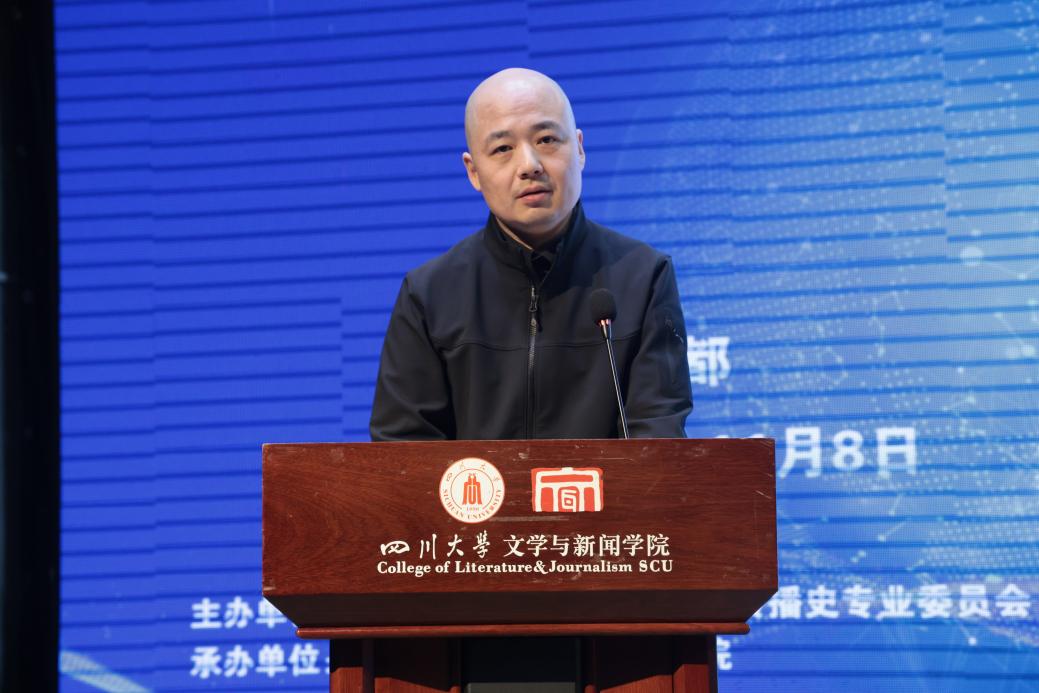 四川大学原新闻学院院长、我院邱沛篁教授首先追溯了四川大学文学与新闻学院外国新闻史的教学工作。他表示,在当今科技迅猛发展的新格局下,培养具备坚定立场、国际化视野的新闻传播人才十分重要。他希望“外新史教育界同仁要紧密团结、促建促学、创新合作,为赢得新闻及新闻教育事业更加美好的明天贡献自己的力量和智慧。”