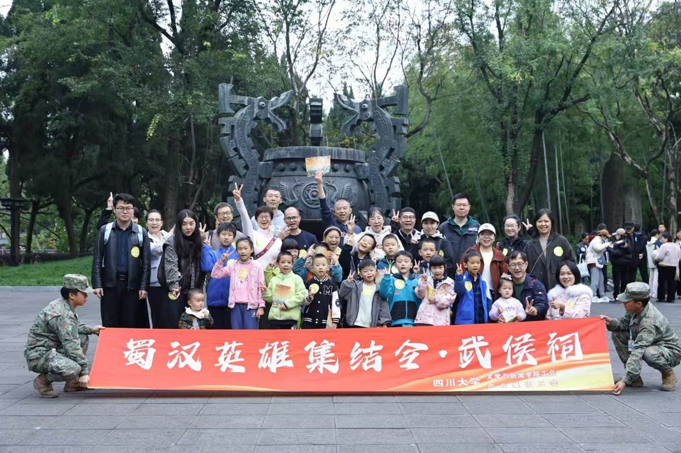 三国文化,浸润成长,2025年11月8日,四川大学文学与新闻学院工会联合产业集团工会精心策划的“蜀汉小英雄”教职工亲子活动顺利开展。成都武侯祠古柏苍翠,红墙映日,来自学校两个单位的教职工及其子女齐聚这座三国文化圣地,透视历史,温暖现实,感受文化厚度与亲子温度兼具的周末快乐时光。