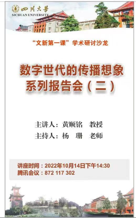114日,我院新闻学教研室黄顺铭教授为2022级本科新生举办的线上系列报告会《数字世代的传播想象》圆满落幕。自914日起,报告会已成功举办三场,每场邀请4来自《大众传播学研究》课程的研究生分享论文。该系列报告会由我院2022级本科新生辅导员杨姗老师主持。