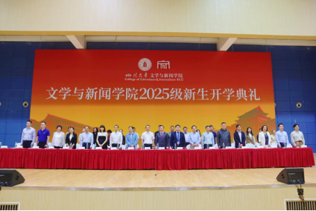 典礼在庄严神圣的国歌声中拉开序幕。院长罗鹭教授首先代表学院向2025级全体新生表示热烈欢迎。他从川大文新人的百年精神烙印谈起,回顾学院办学历程中承载的厚重历史和现实关怀,鼓励同学们既要追求诗意与远方,也要承担责任与担当。他在讲话中勉励同学们立志要早,继承先辈的报国之志;立身要正,肩负强烈的社会责任感和使命感;立学要勤,在笔耕不辍中收获丰收的喜悦;立言要谨,让不朽的言论与学说流传后世,做顶天立地的文新人。