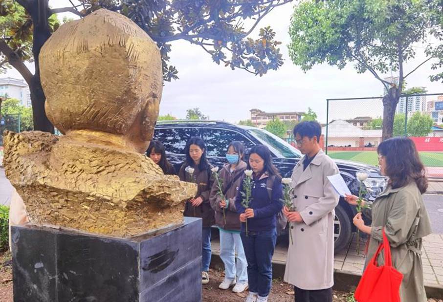 2021年4月1日上午,为缅怀逝故先辈、继承先人遗志、弘扬爱国主义精神,我院2019级本科辅导员贾瑞琪老师与九位学生代表来到我校望江校区校史馆前的爱国诗人吴芳吉雕像前举行祭扫活动。在清明节即将到来之际,通过实际行动表达对爱国先辈的追思。