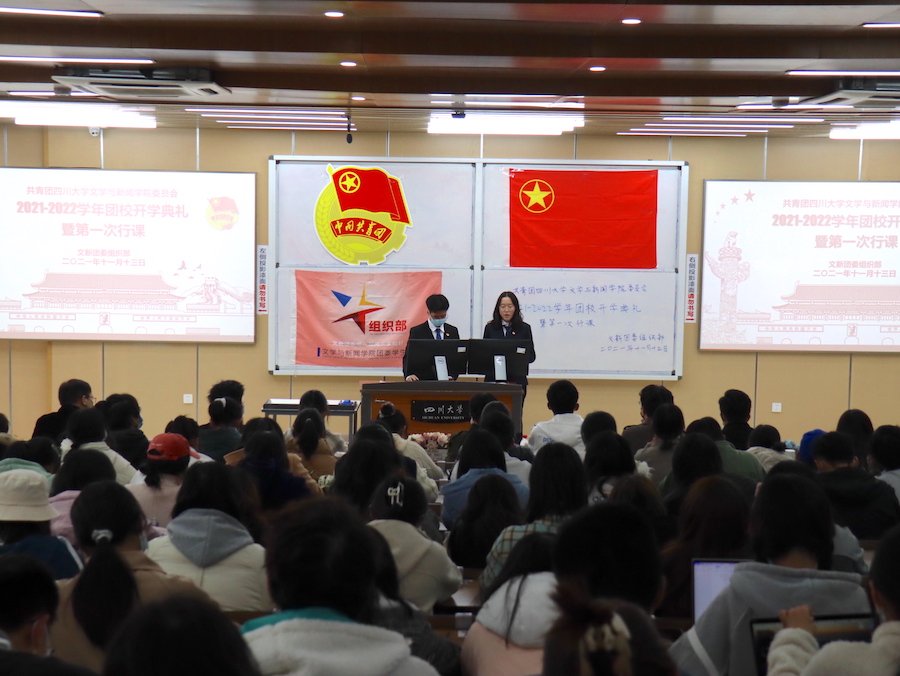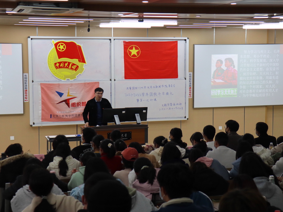11月13日下午,由我院团委学生会组织部主办的共青团四川大学文学与新闻委员会2021-2022学年团校开学典礼暨第一次行课于江安校区综合楼C座404教室完满结束。我院团委书记王志华老师、我院团委学生副书记郑钰科、材料科学与工程学院团委学生副书记宋志诚、匹兹堡学院团委学生会组织部部长胡皓轩、马克思主义学院团委学生副书记李香凝、高分子科学与工程学院团委学生会组织部副部长童凯权与高分子科学与工程学院团委学生会文体部部长陈昭颖出席,团校全体学员参与了本次活动。