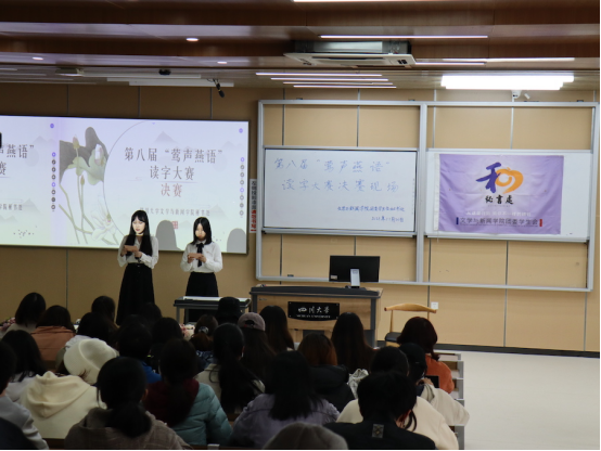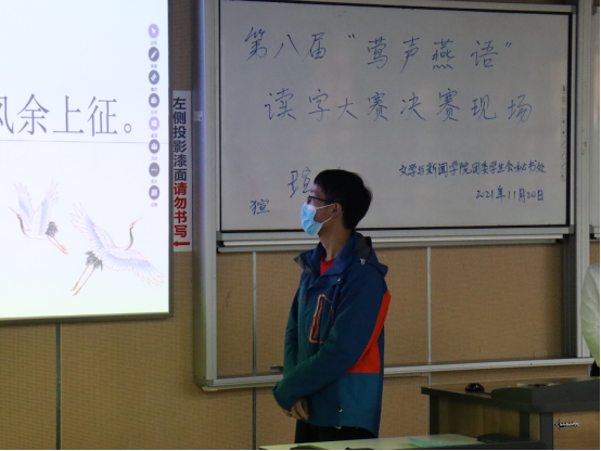 11月20日下午,由我院团委学生会秘书处主办的第八届“莺声燕语”读字大赛决赛在江安校区综合楼C座206教室举行。我院2021级本科生兼职辅导员任贤老师、团委学生会副主席谷明姗、创业就业促进部部长杨璐繁受邀出席了本次活动。