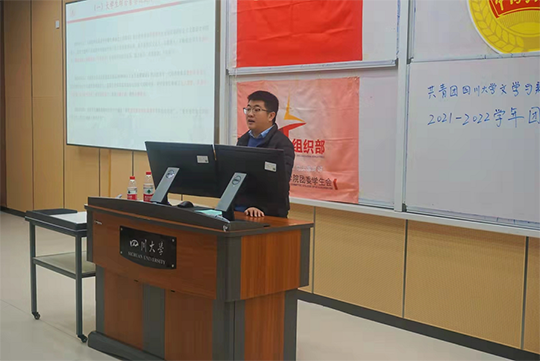 我校团委李杨老师首先根据《四川大学本科生培养方案意见》向同学们解读了社会对新时代大学生综合素养及能力培养的要求,让同学们认识到了德智体美劳全面发展的必要性与关键性。他结合实际以有趣的例子讲解了第二课堂的含义、发展历程和重要性。