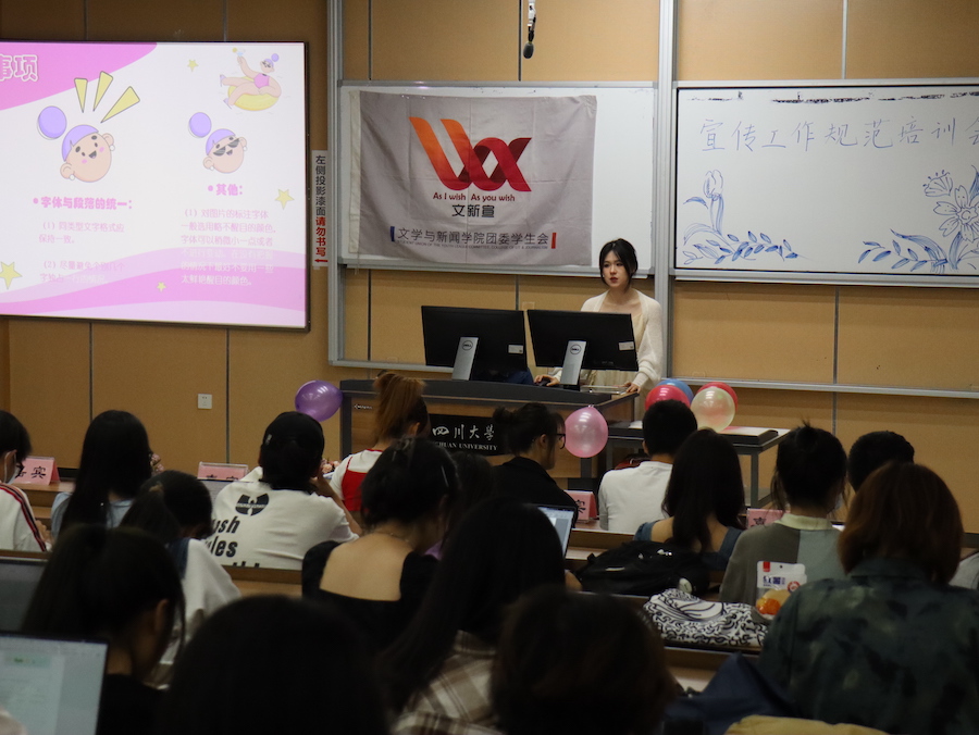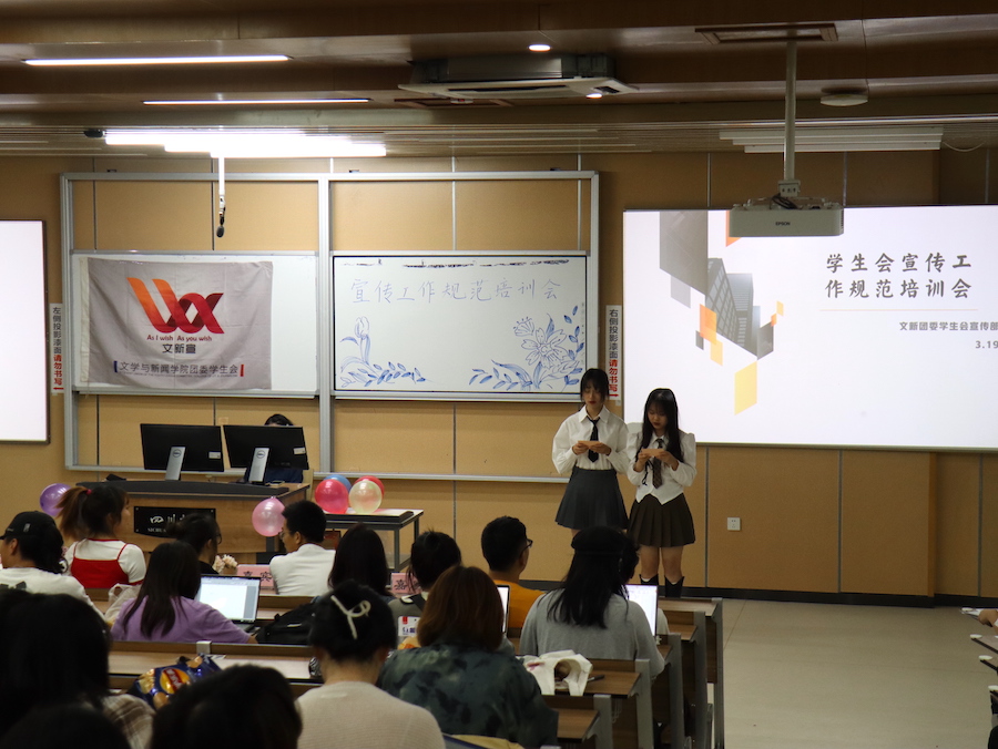 随后,进入到培训环节。我院宣传部媒体中心主任苏婉楸、创意设计中心主任马腾与媒体中心副主任杨慧乔分别就新闻稿写作技能、海报制作技能和微信公众号推送制作等进行了全面详细的讲解。培训内容充实,准备充分,有助于解疑释惑和专业技能提升。
