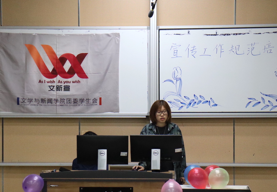 3月19日晚,我院团委学生会宣传工作规范干训会于江安校区综合楼C座204教室举行。我院团委学生会副书记郑钰科、学生会主席张小艾、副主席谷明姗、副主席康雨晨及团委学生会全体干部干事参加干训会。本次干训会由我院团委学生会宣传部主办。